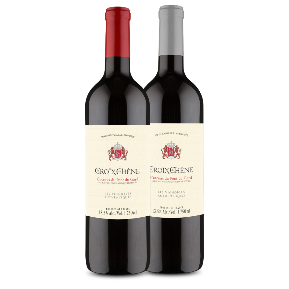 La Croix du Chêne es un vino de nobleza. Nacido en tierras vitivinícolas a los pies del antiguo monumento Pont du Gard, su identidad proviene de la memoria del lugar. Su escudo evoca los terrenos fértiles que pertenecieron a los antiguos propietarios, anidados entre cruces sagradas protectoras y a la sombra de encinos, símbolos de fuerza y longevidad. Croix du Chêne proviene de la I.G.P. Coteaux du Pont du Gard, un terroir excepcional, moldeado por la historia, la naturaleza y la experiencia humana. Influenciados por los vientos marinos, el mistral y la presencia del agua que modela el suelo, los vinos de esta I.G.P. revelan una riqueza aromática sorprendente, combinando frescura, elegancia y personalidad.